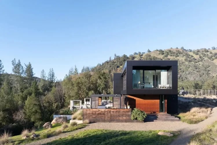 At a modern sanctuary in Calistoga, California, designed by Signum Architecture, both shou sugi ban—an ancient Japanese timber-charring technique—and stained cedar have been used to create an exterior cladding that offers natural resistance to fire and insects. Combined with concrete and expansive glazing, the palette is a sophisticated balance of durability and material warmth. “This home occupies sensitive terrain that called for a design solution that is both sustainable and fire resistant,” says Jarrod Denton, partner at Signum. “Our approach was holistic.”